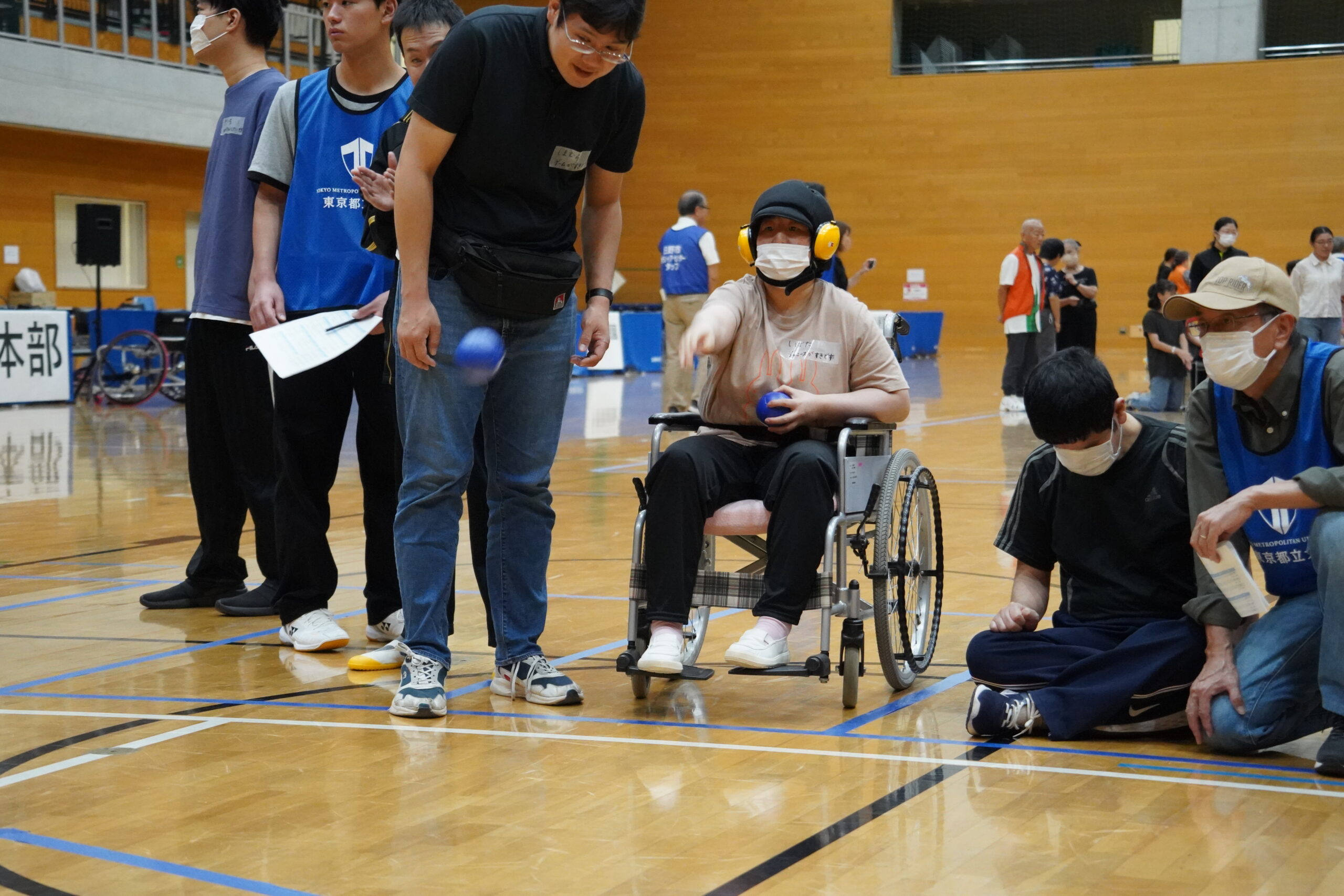 10月4日(日) 日野市市民の森ふれあいホールにて『みんなといっしょの運動会』が開催され、夢ふうせんも利用者7名、職員4名の計13名で参加しました。当日は電動車いすサッカー元日本代表の吉沢選手も出演しており、吉沢選手のスピーチを聞いて参加者の気持ちは熱くなりました。その後はボッチャ、パン食い競争、綱引きを行いました。笑顔あり、悔しさありの勝負で会場は常に歓声が上がり盛り上がっておりました。試合をした他の施設とは利用者同士の会話もあり、交流の場にもなっていました。