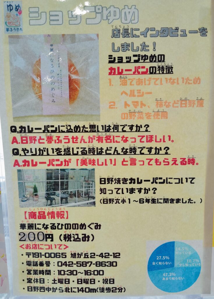 12月にショップゆめの取材に訪れた、日野第六小学校6年生の皆さんが、インタビューを通じて学んだことでポスターを作って下さいました!とても上手にまとめて下さりありがとうございます。現在ショップに掲示しております。是非ともご覧になって下さい。 -