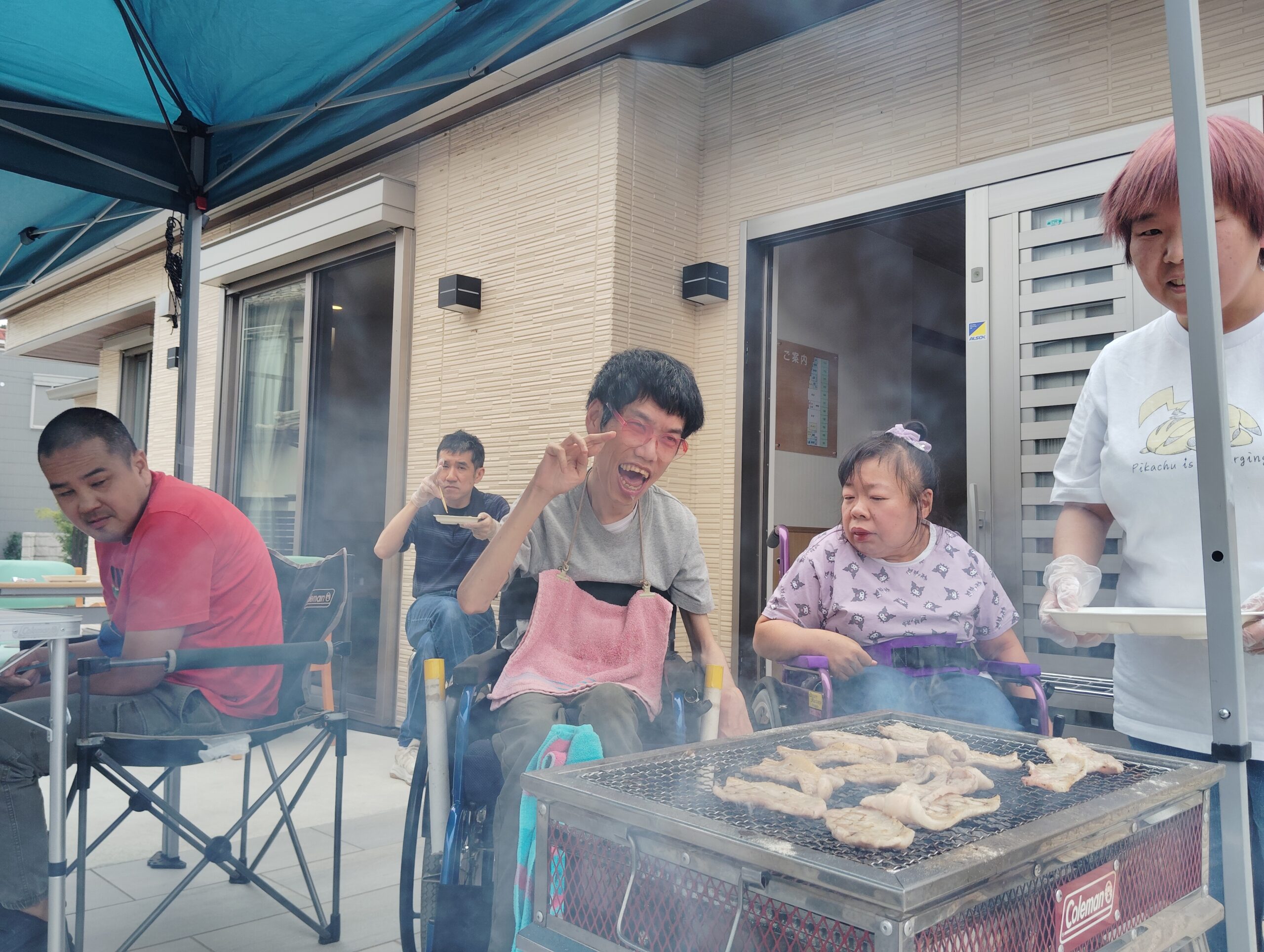 9月23日(祝) 暑さもひと段落したこの日、夢のいえ(高幡)と第2夢のいえ(南平)の入居者合同での初めてのイベントとして、大BBQ大会が開催されました!当日は焼肉・焼きそば・かき氷などの他に、職員が差し入れてくれた採れ立て野菜も焼いて美味しく頂きました♪調理に携わり張り切ってみんなの分を用意して下さる方、食べる専門の方、賑やかな雰囲気を避けてお部屋で焼き上がりを待つ方など、思い思いの過ごし方でBBQを楽しんでいました。ご参加頂いたボランティアの皆様ありがとうございました。今後は、夢のいえが地域に根差していくためにも、近隣住民の方にご一緒していただくなど、地域に知って頂く取組を進めていかれればと思っております。皆さん笑顔でした(^^♪