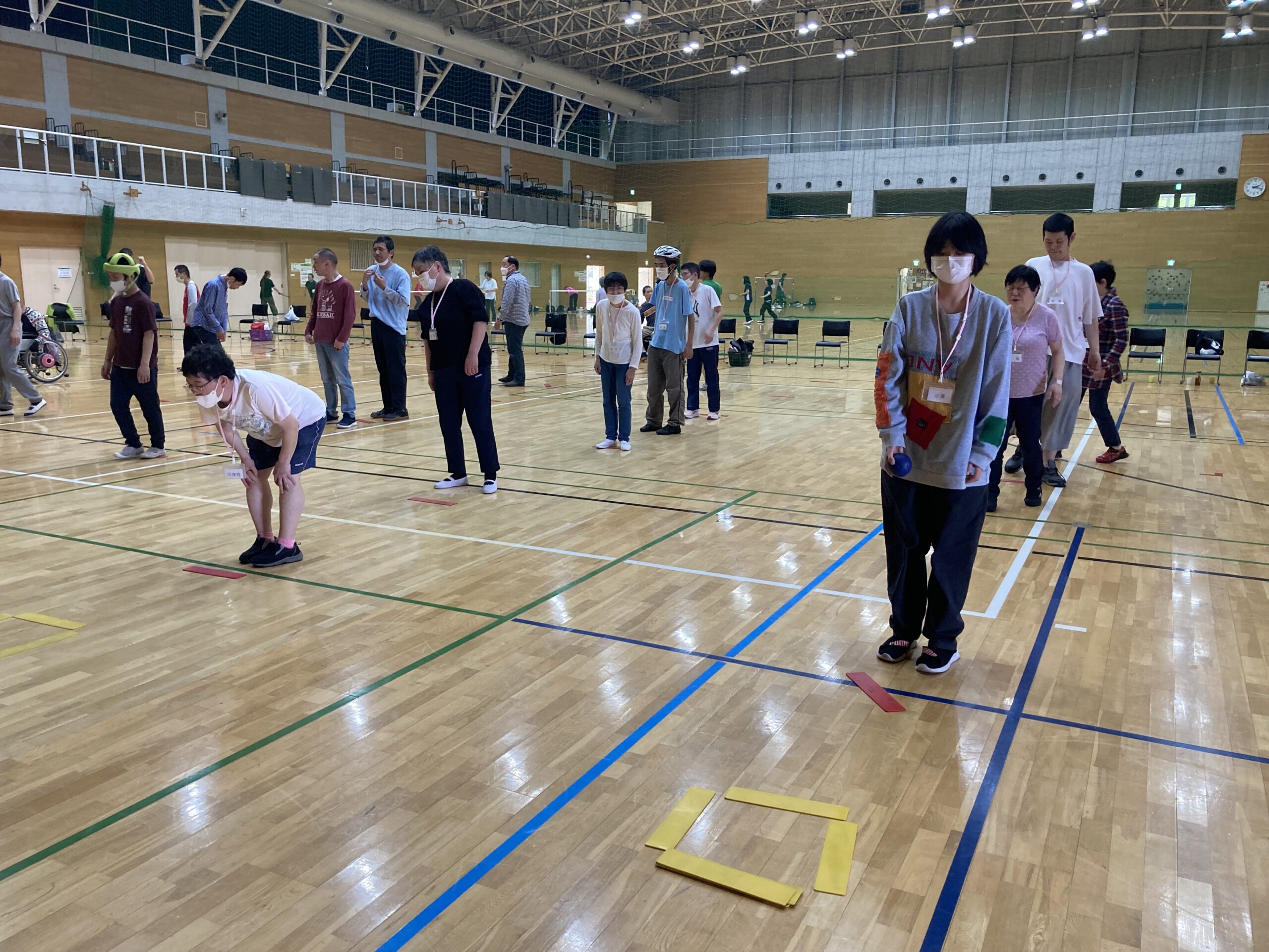 4月14日(火)今年度最初の「障害者スポーツ体験教室」に参加しました。毎月1回、就労継続支援B型利用者の希望する方と月1回参加しています。今回はボッチャを行いました。
